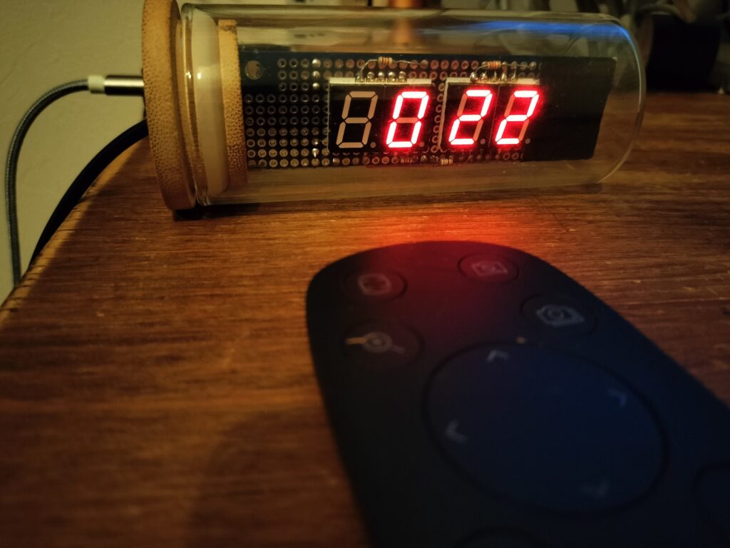 赤外線リモコン用の受光部も付けてリモコンの信号を受信すると